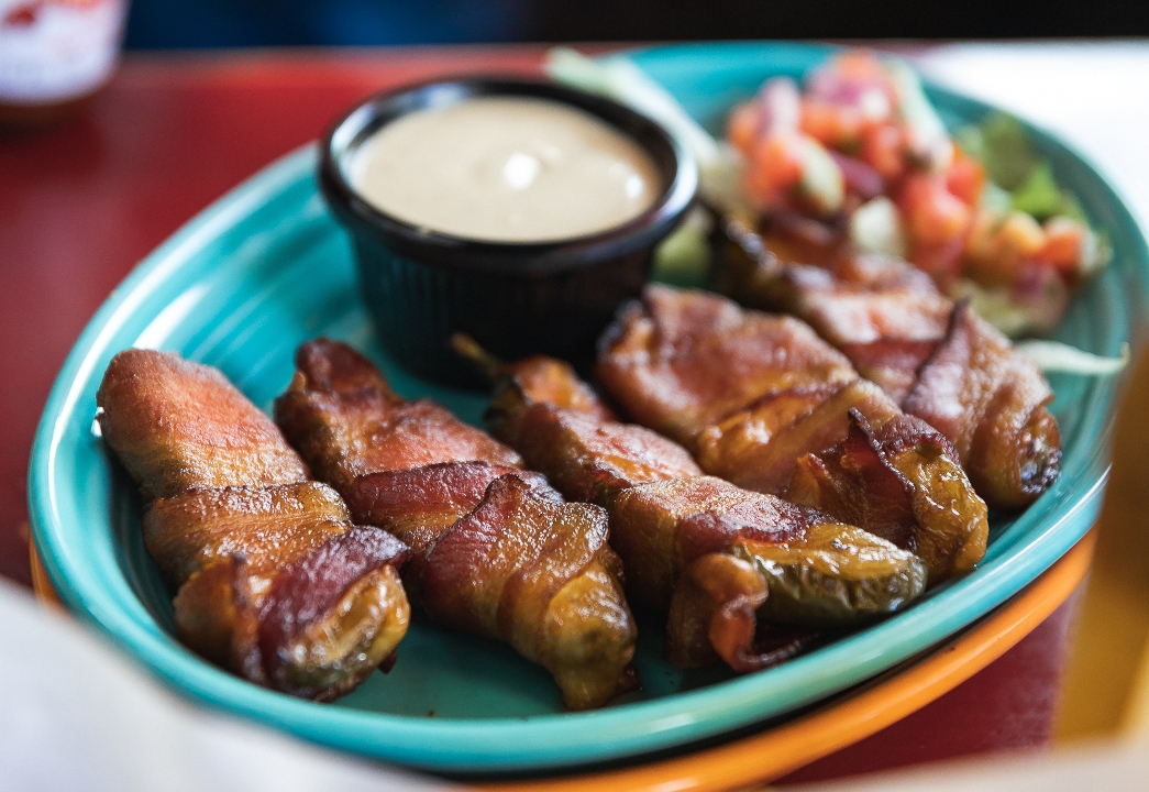 roasted jalapeños filled with cheese and wrapped in bacon. Served with avocado ranch