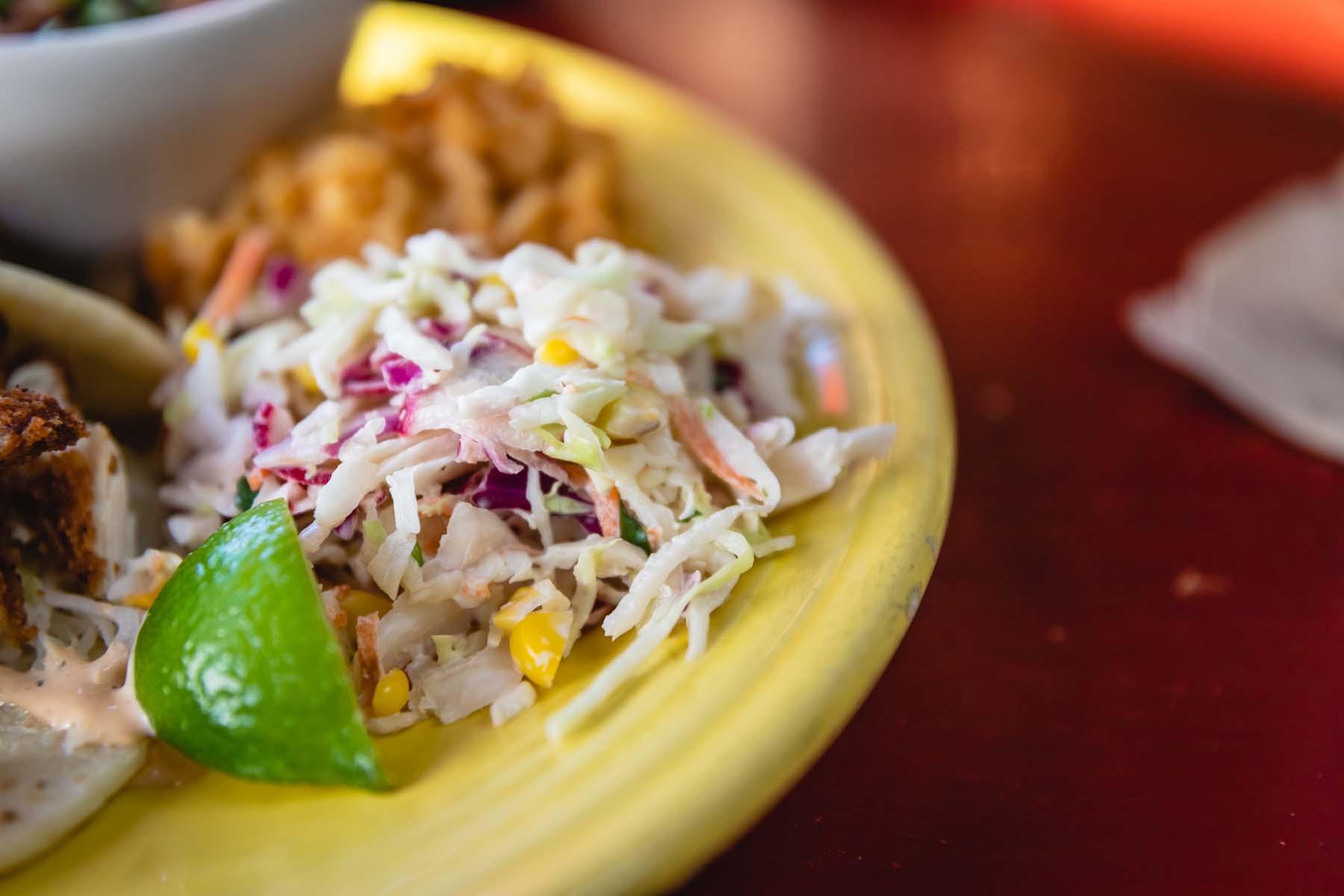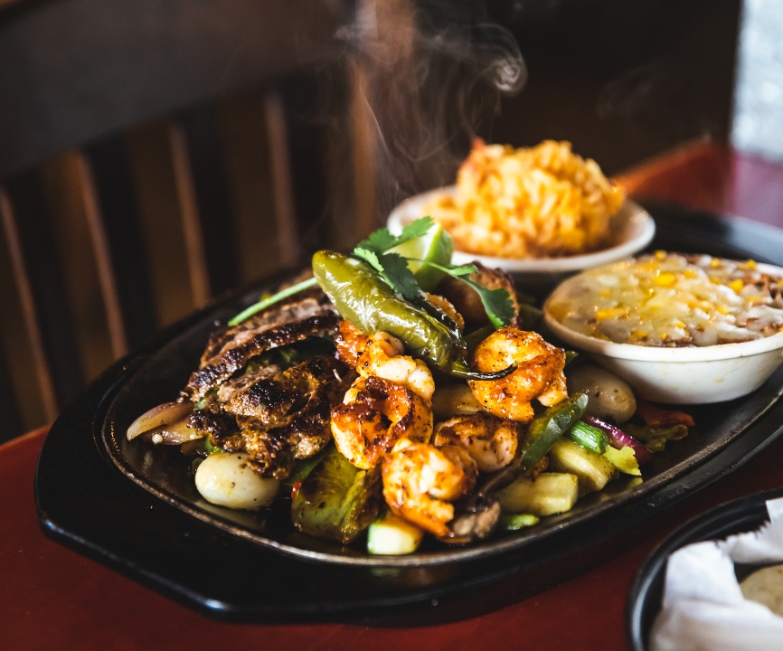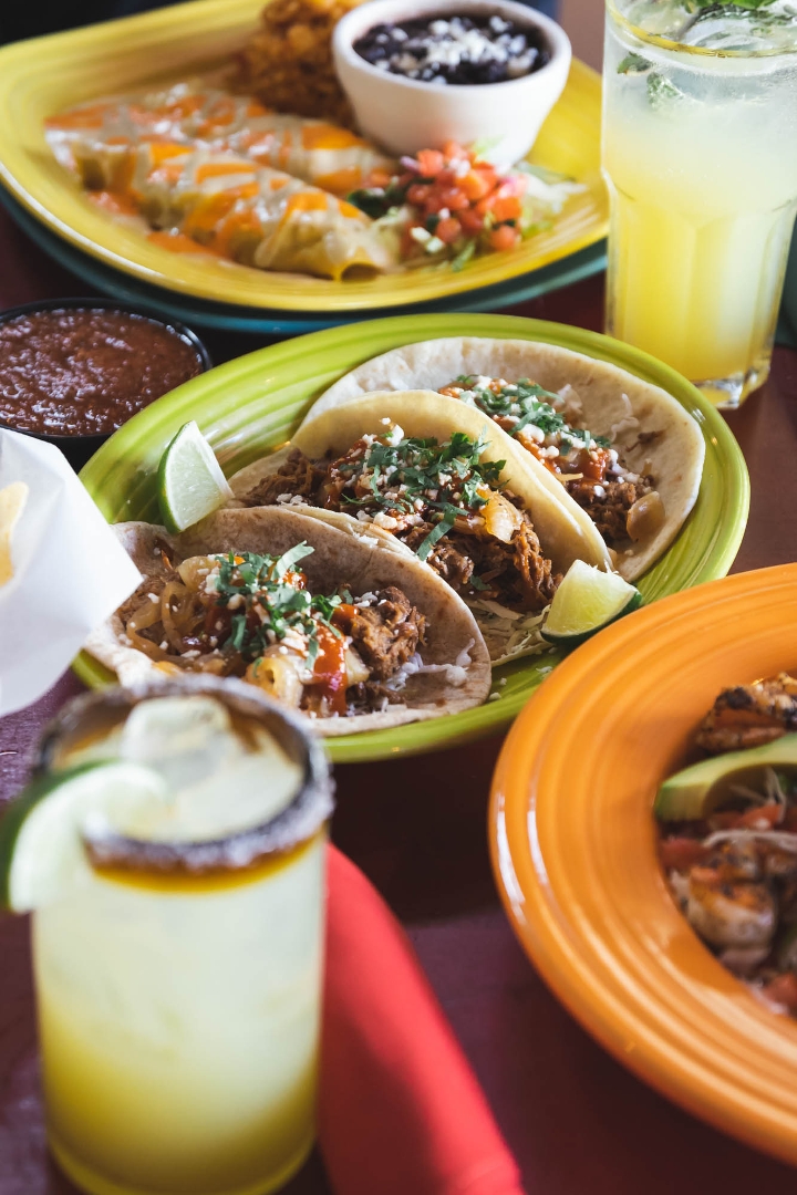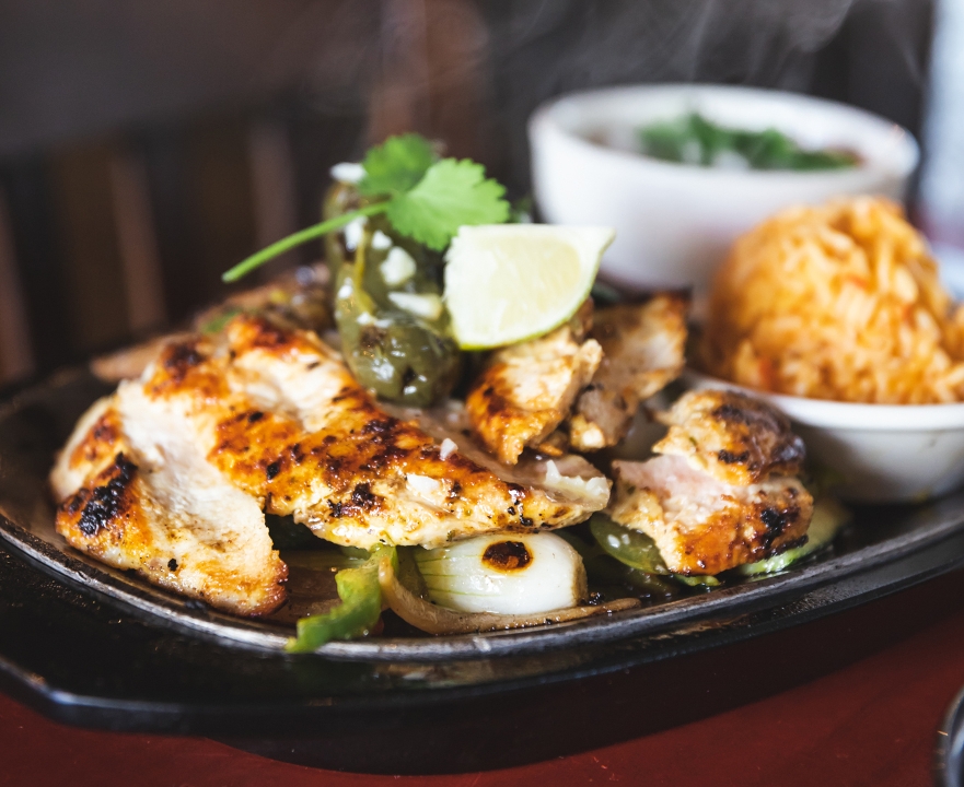choice of homemade flour, lettuce cups, crispy or soft corn tortillas. Served with cilantro, red rice and citrus chipotle slaw with choice of charro, black or refried beans