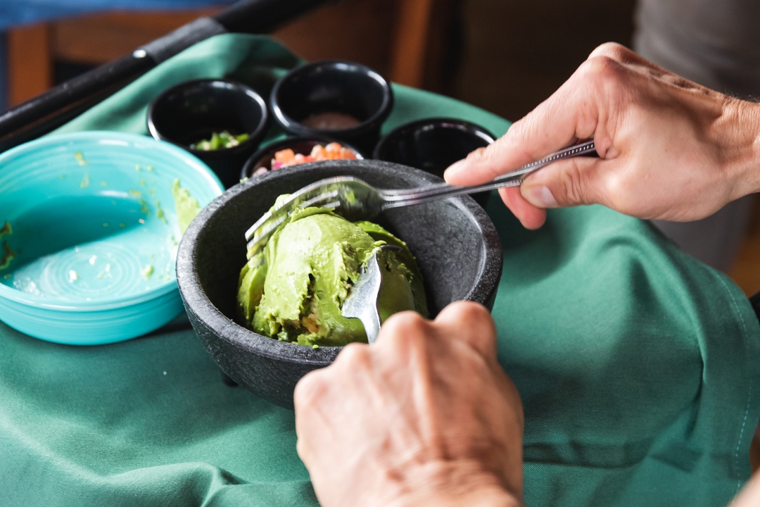 two avocados, serrano peppers, pico de gallo, salt and lime juice