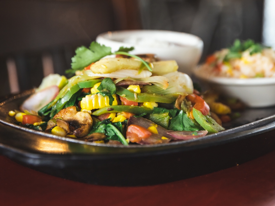 sauteed spinach, diced tomatoes, corn, onions and peppers.